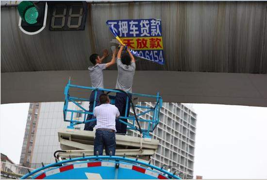 目測人行道過街天橋橋身垂直距離地面8米,100cm*80cm見方的藍色 “牛皮鮮”上印著車貸廣告。關注到這些廣告的市民都在猜:“這么高的天橋,牛皮蘚是么樣貼上去的?”據(jù)青山城管“三亂”整治專班負責人介紹,友誼大道兩座天橋東南西北四個方向的紅綠燈旁均被貼上了同一內容的“牛皮癬”,應該是前天晚上(11日)干的,估計有兩種方式張貼:一是借助比較高的車身站立進行,這需要大型車輛配合;二是腰系安全帶從橋面懸垂下去,這很簡單,但是很危險。不管是怎么貼上去的,只要發(fā)現(xiàn)一處,就清理一處,這點事難不倒我們。有困難找龍豪升降機,除了及時清理外,還將對當事人展開調查,依法進行處置。